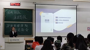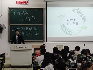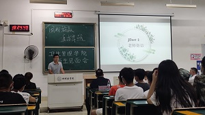 学院党总支书记、院长陈兴智同志,首先介绍了卫生管理学院组织架构及职责分工,使新生对我院概况有了一个大致的了解。其次结合我院提出“因材施教、追求卓越”教学理念和“创新、特色、探索、发展”管理理念,就专业设置、培养目标、职业规划等向同学们作了较为详细的讲解。最后结合疫情防疫工作,对新生到校后的学生工作管理,提出了具体要求,希望同学们转变角色,适应环境,尽快融入到大学生活学习中来,不断成长进步。