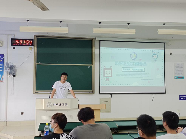 9月13日,2020级医学信息工程开展了以秋季卫生为主题的班会。班长肖鹏程同学主持讲话,说明了此次主题班会的目的,并列举了此次会议的流程。 然后介绍了寝室卫生的重要性以及养成良好的卫生行为习惯对预防疾病、提高自身免疫的重要性。
