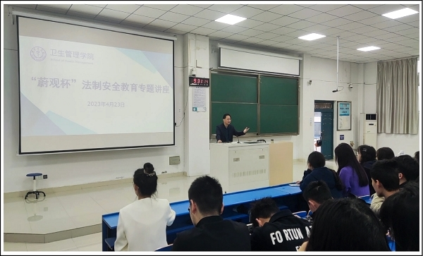 为贯彻总体国家安全观,增强广大同学的国家安全意识和法制素养,营造全民自觉维护国家安全的良好氛围,卫生管理学院近日举办了“蔚观杯”法制安全教育专题讲座。本次讲座邀请了医学影像学院党委副书记吴涛作专题报告。学院党总支书记史永庆主持讲座,2021级、2022级全体学生和年级辅导员参与了本次活动。