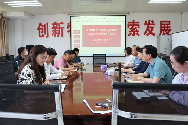 为深入学习贯彻党的二十大精神,推进主题教育走深走实,卫生管理学院党总支近日组织召开了理论学习中心组学习研讨会。校关工委成员武余芹、张文敏应邀到会作党的二十大精神专题宣讲。会议由党总支书记史永庆主持,学院全体教师、学生党员代表、班级思政委员代表参加了会议。