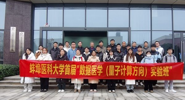 为积极探索与创新高校量子计算方向数据医学人才培养路径,1月7日,卫生管理学院副院长王辅之率蚌埠医科大学首届“数据医学(量子计算方向)实验班”全体学生和教师团队,前往本源量子计算科技(合肥)股份有限公司(以下简称“本源量子”),开展专业实践和学习交流活动。本源量子首席品牌官、副总裁代群,量子计算专家孔伟成博士,本源量子云中心营销部部长汪波和相关部门负责人参加交流。