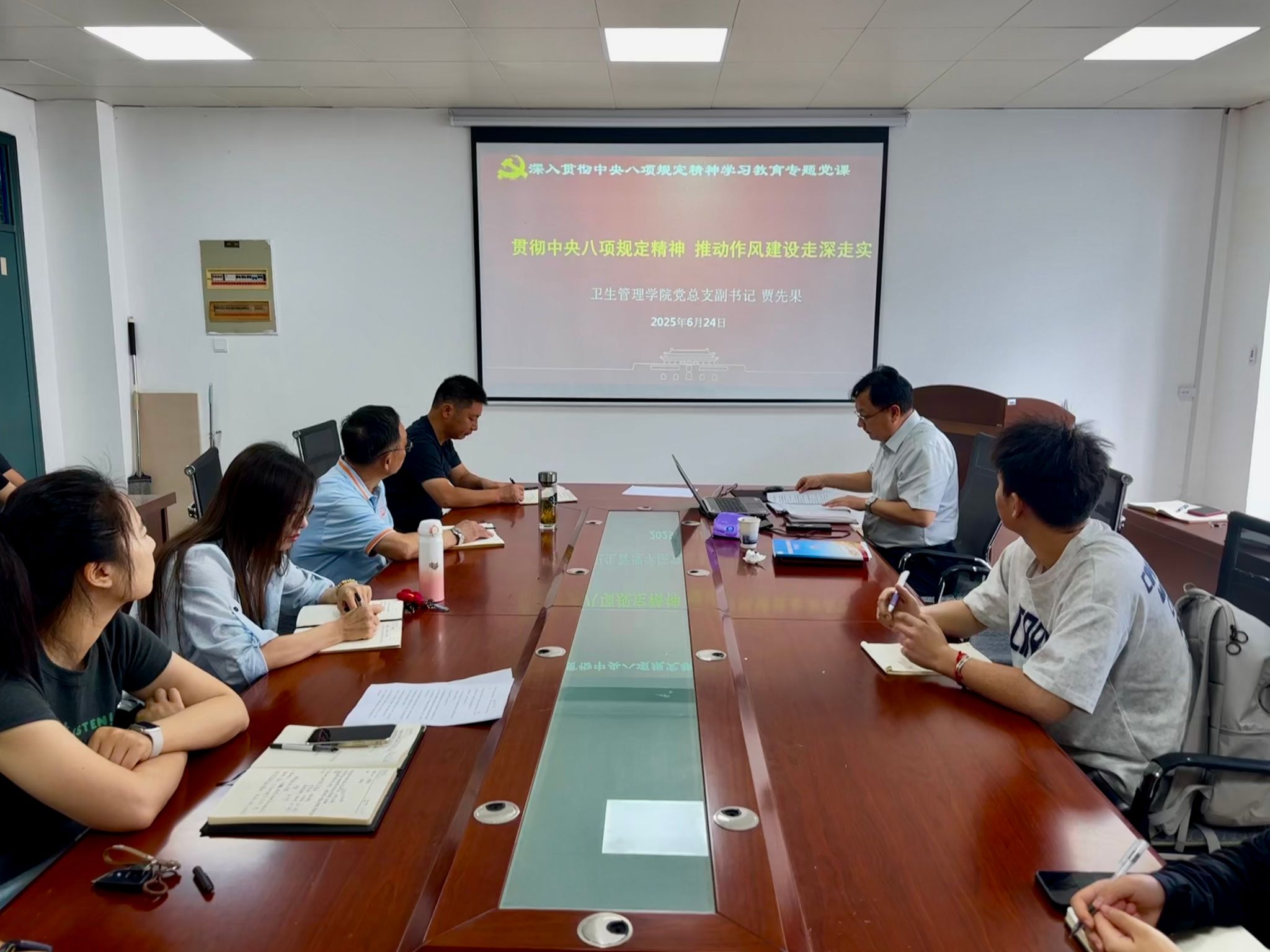 6月24日上午,学院党总支副书记贾先果以“贯彻中央八项规定精神 推动作风建设走深走实”为主题,为全体党员干部讲授专题党课。