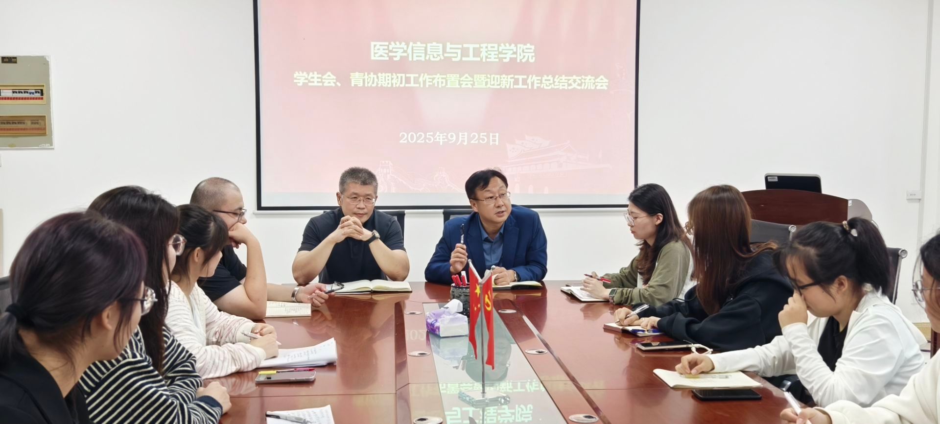 9月25日,医学信息与工程学院召开学生会、青协期初工作布置会暨迎新工作总结交流会。学院党委书记张浩轩、副书记贾先果、团委书记张瑜、辅导员程晟及学生会、青协负责人共同参会。