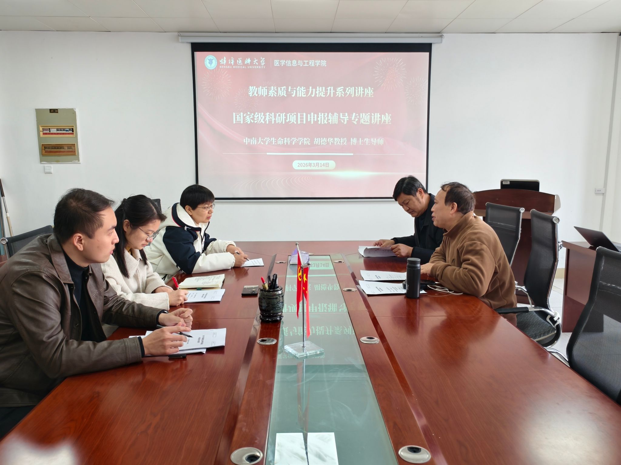 讲座结束后,胡德华为学院青年博士申报国家社科基金课题进行专题辅导。他结合自身丰富的项目申报与评审经验,对国家社科基金课题选题技巧、创新点提炼、申报书撰写及常见问题进行了细致讲解,并对相关教师课题申报书进行了“一对一”的修改指导。与会教师表示,此次辅导针对性强、干货满满,对切实提升课题申报书质量具有重要的指导意义。