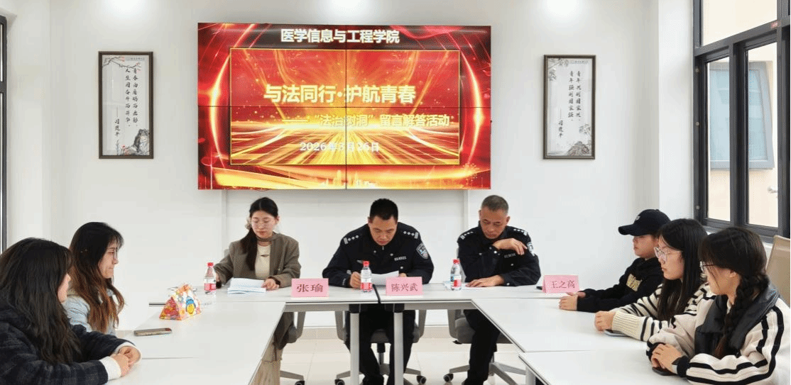 3月26日,医学信息与工程学院9号楼功能型党支部、团支部,在“一站式”学生社区综合活动室,联合举办“法治树洞”专题活动。“法治树洞”是融合专业法治答疑与权益守护的普法平台,专为解答学生日常法治困惑、普及反诈知识打造。本次活动以党建带团建为核心抓手,创新法治教育形式,是学院推进党团组织协同育人、筑牢校园法治防线的生动实践。校外法治导师陈兴武、法治辅导员王之高、学院辅导员张瑜及全体法治宣传员出席活动。