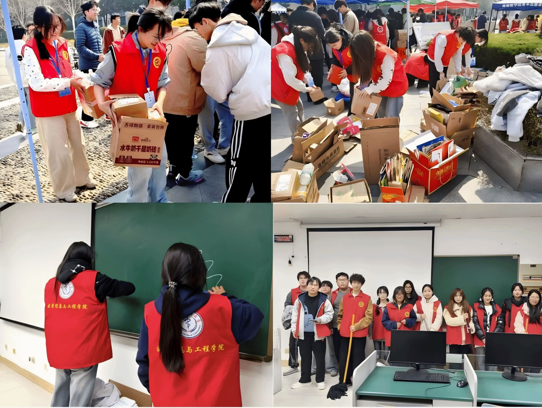 “回收绿色资源,点染美丽校园”资源回收活动:3月14日,志愿者在校园大圆盘开展绿色回收主题活动。志愿者有序引导师生捐赠废旧纸箱、塑料瓶等可回收物资,同步开设纸盒手工改造体验区,现场指导制作实用收纳用品,普及绿色环保、变废为宝理念。