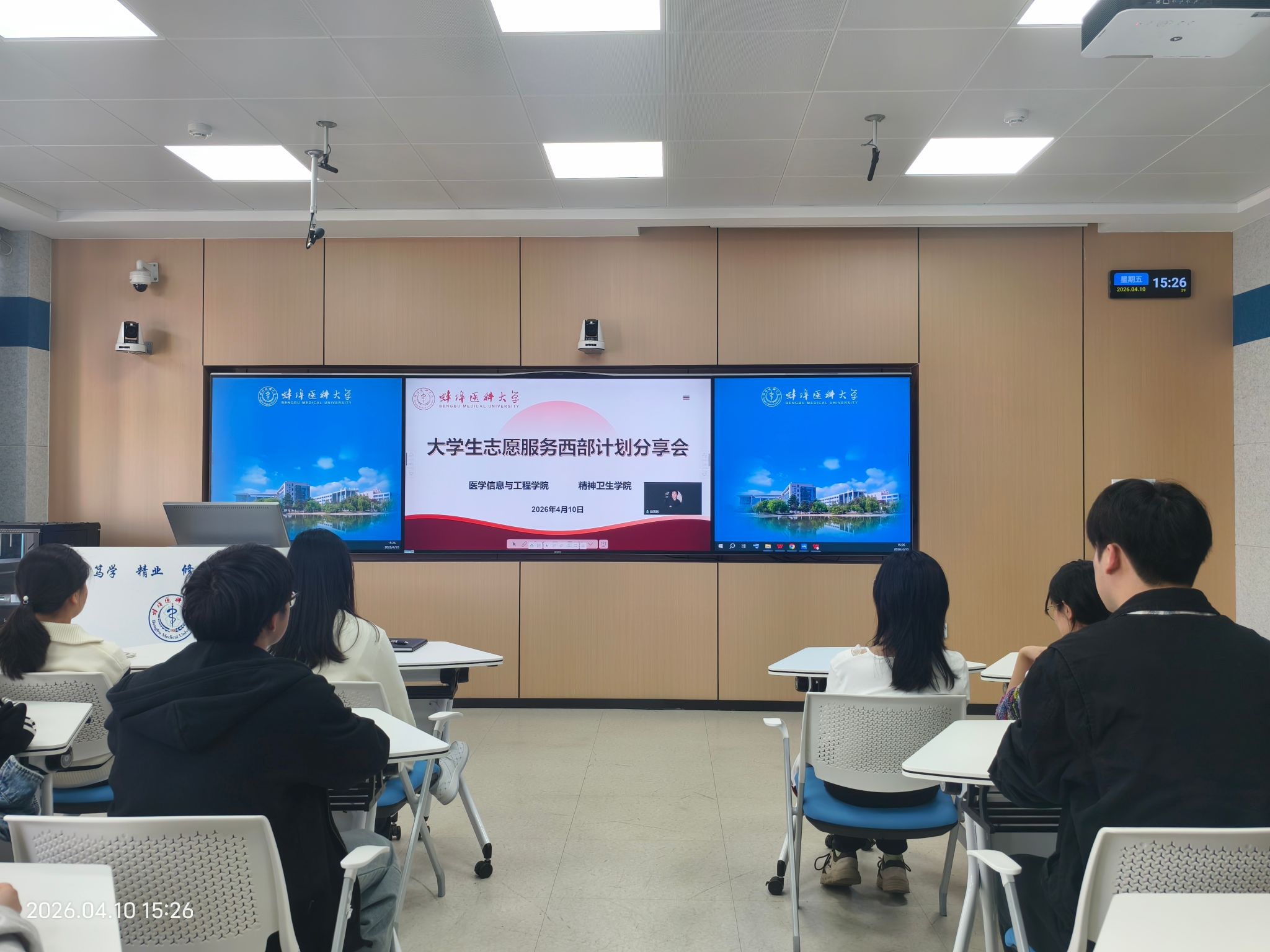 4月10日,医学信息与工程学院联合精神卫生学院,成功举办大学生西部计划志愿服务线上经验分享会。两院毕业生齐聚云端,共听基层志愿故事,汲取青春奋进力量。