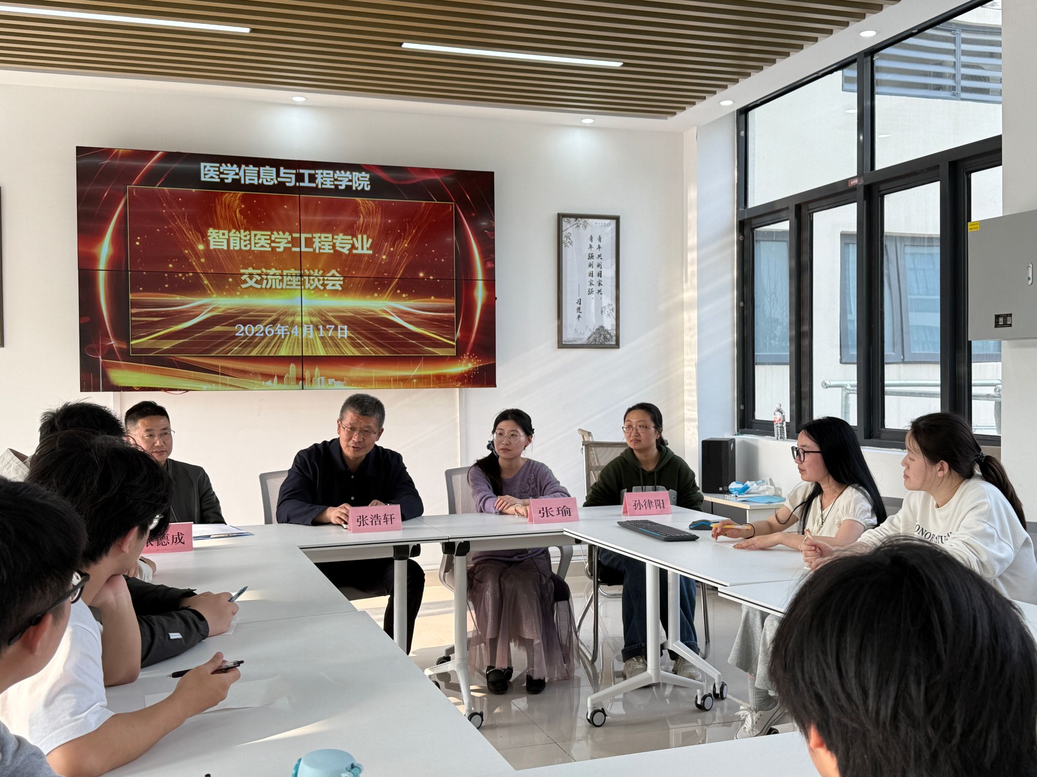 为深入推进党建带团建以及党建与专业建设深度融合,精准聚焦智能医学工程专业发展与人才培养核心工作,搭建师生沟通交流、答疑解惑的长效平台,4月17日,医学信息与工程学院在“一站式”学生社区综合活动室举办“智医红芯”交流座谈会。学院党委书记张浩轩、第三党支部书记张德成、团委书记张瑜、教科研办秘书孙律阳,以及2024级、2025级智能医学工程专业学生代表参加本次座谈会。